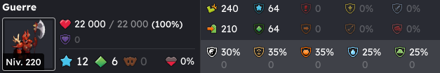 Guerre possède 4 phases de vitalité : 17 600 HP, 13 200 HP, 8 800 HP et 4 400 HP.