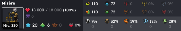 Si un mob vous tape, il rentre en état collecte. S’il est en ligne de vue de Misère au début de son tour, elle se boost (dommage, PA, PM, PO, CC et statistique élémentaire).